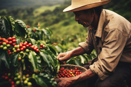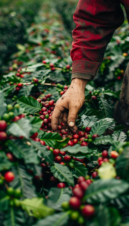 Harvesting arabica and robusta coffee berries farmer s handpicking in agriculture