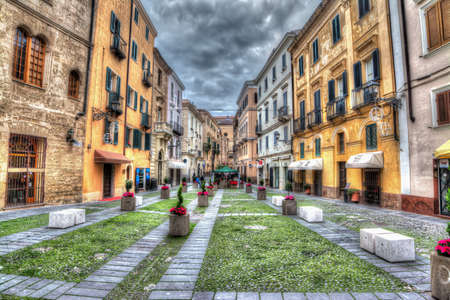 small square in Alghero, Italy. Processed for hdr tone mapping effect.
