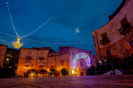 Typical light decoration of Sicilian summer in the Margherita square of Leonforte