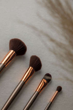 Set of makeup brushes on a light background