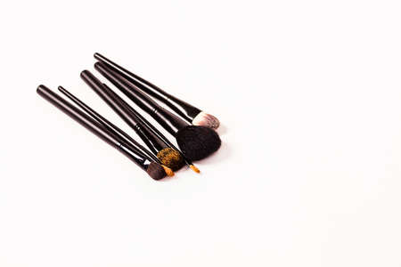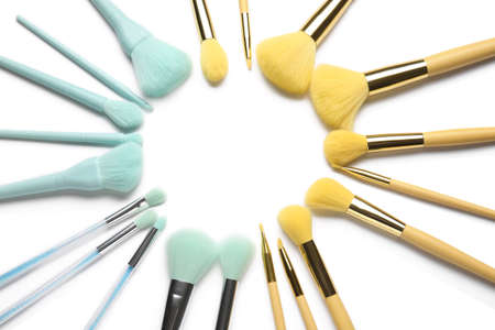 different cosmetic brushes arranged white background. Resolution and high quality beautiful photo