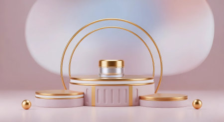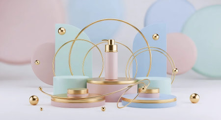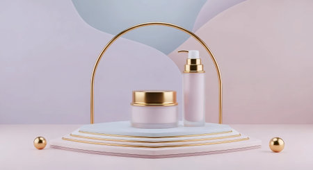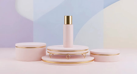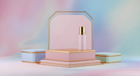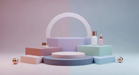 3d render of cosmetic product display podium with pastel gradient background.