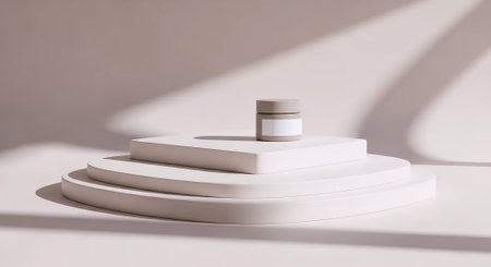 3d render of cosmetic product display podium with shadows and sunlight.