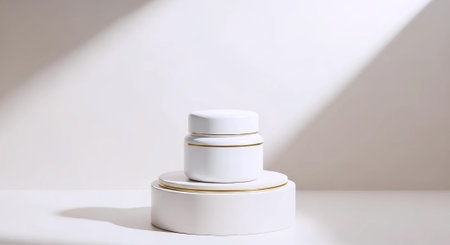 White podium with cosmetic cream jar and shadow on white background. 3d rendering
