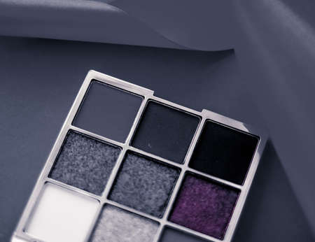 Cosmetic branding, mua and girly concept - Eyeshadow palette and make-up brush on graphite background, eye shadows cosmetics product for luxury beauty brand promotion and holiday fashion blog design