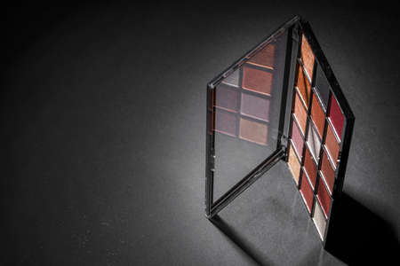 Palette of colorful eyeshadows. Beauty and fashion concept. Makeup and cosmetics idea. Copy space.