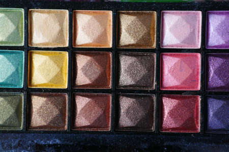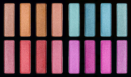 Macro shot of glossy make-up powder. Colorful makeup palette