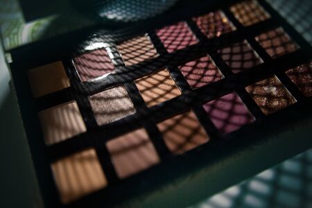 Makeup eyeshadow palette close-up. Cosmetic background.