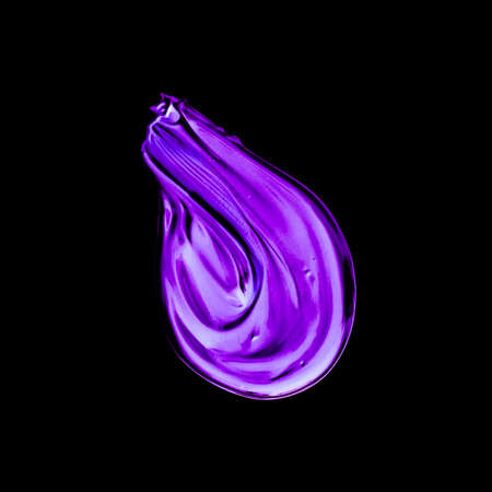 Art abstract, cosmetic product and hand painted design concept - Purple neon paint brush stroke texture isolated on black background