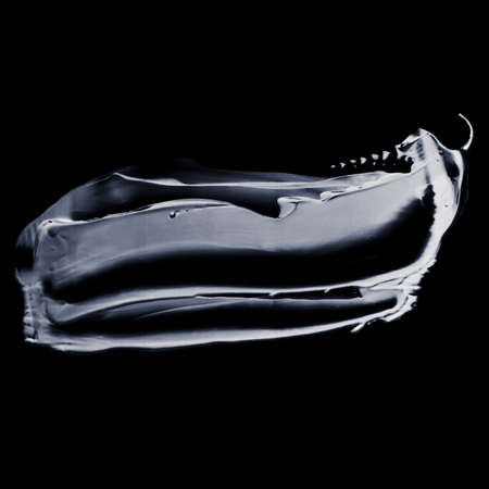 Beauty smear, cosmetics product and abstract liquid concept - Silver paint brush stroke texture isolated on black background, glamour make-up sample smudge