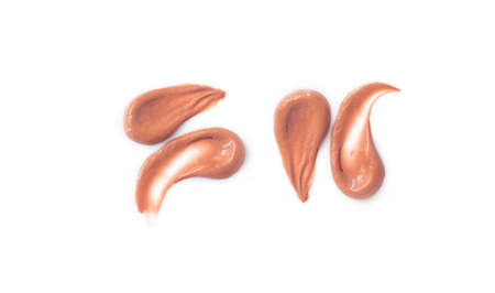 Make-up liquid tone cream or foundation, beige concealer smears set isolated on white background