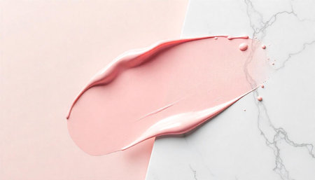 Pink cream stroke on pale pink and marble background