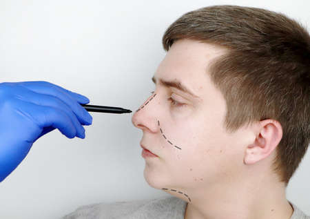A man at the reception at the plastic surgeon. Before nose surgery, rhinoplasty