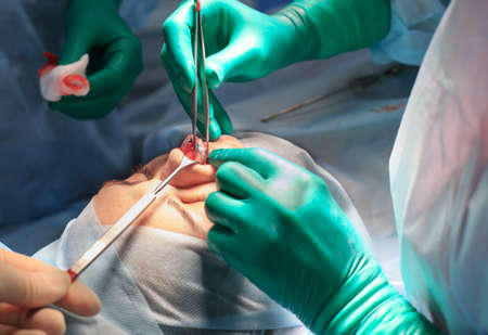 Plastic surgery of the nose in operating room, rhinoplasty