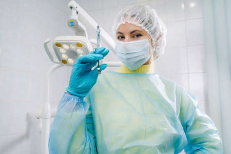 woman doctor with a syringe in her hand.