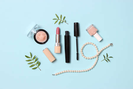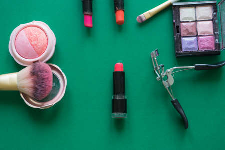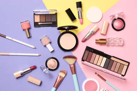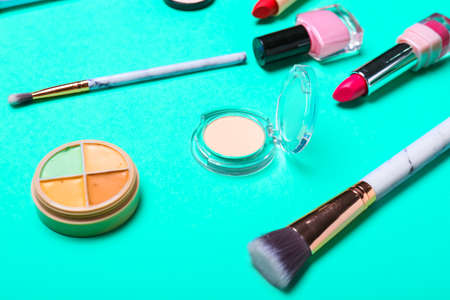 decorative cosmetics on a colored background