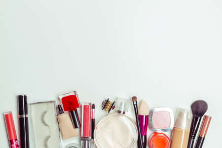 Top view of cosmetics and make-up items