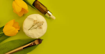 decorative cosmetics, tulip flower on a colored background