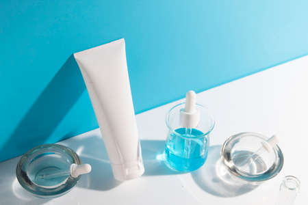 Skin care product. Beauty and youth of a woman. Hair and body care. Face serum. Beauty injection. Youth shampoo.
