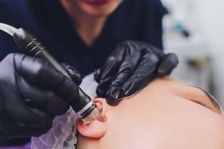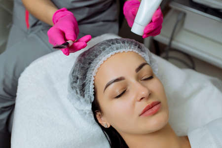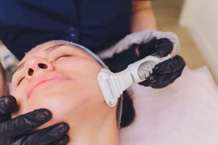 Female at cosmetic beauty spa clinic has facial hardware cosmetology. Woman making beauty procedures.