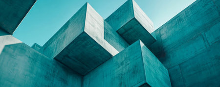 Geometric concrete structures under blue sky, architectural abstraction. Modern urban design concept