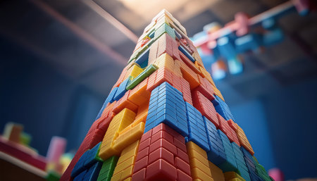 Brightly colored toy blocks stacked playfully for fun and creativity