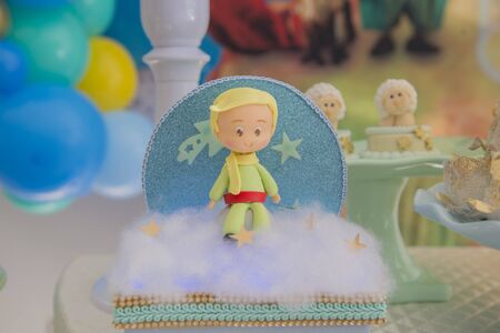 Birthday party decoration detail. Party with the theme of the little prince. Selective focus.