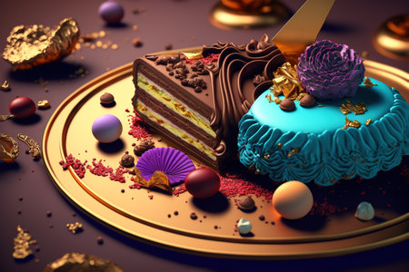 fancy chocolate and Colorful dessert with gold accents, photo.