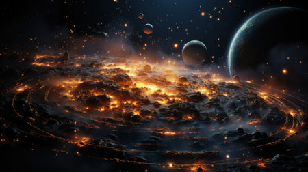 An image of an alien planet and some planets, AI