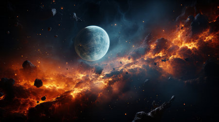 AI Generated. Delve into the depths of space and witness the mesmerizing beauty and chaos of a planet explosion, as fiery tendrils of energy dance across the void,