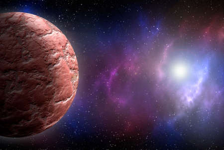 Unknown planet from outer space. Space nebula. Cosmic cluster of stars. Outer space background. 3D Illustration.