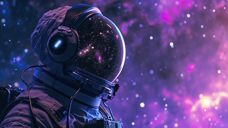 This illustration features a dramatic and creative design with cool tones, ideal for space-themed projects or sci-fi graphics. The high-quality execution makes it suitable for posters, book covers, or digital art displays. Its unique style appeals to enthusiasts of space exploration and science fiction. AI-generated illustration.