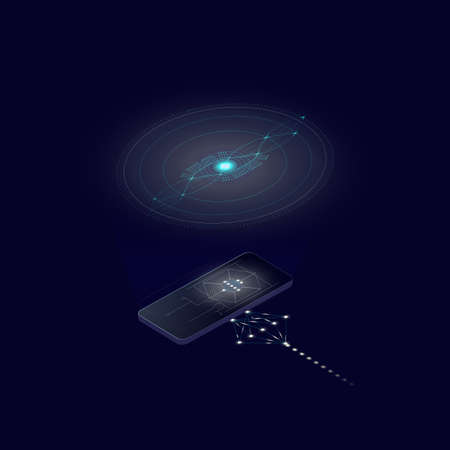A futuristic smartphone on an abstract background. Concept: technology, the future and futuristic technologies.