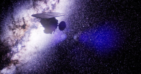 This artwork showcases the deep impact spacecraft navigating through the vastness of space, surrounded by brilliant stars and cosmic dust.