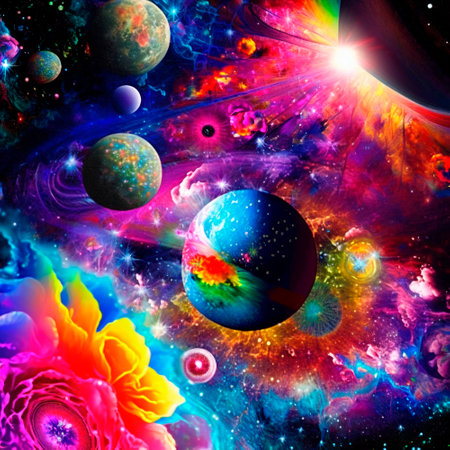 A mesmerizing image of a galaxy with swirling colors and planets, capturing the vastness of space.. AI Generation