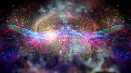 Starry deep outer space - nebula and galaxy. Science fiction art with small DOF.