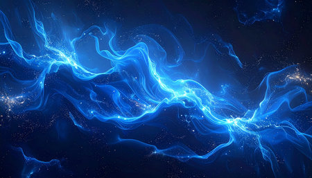 A mesmerizing cosmic scene with vibrant blue nebula-like formations set against a starry background, evoking a sense of wonder and vastness.