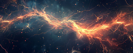 A powerful energy background featuring electric currents and glowing lines crisscrossing against a dark backdrop, evoking a high-energy atmosphere.