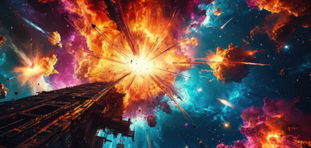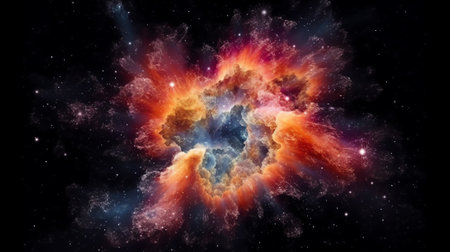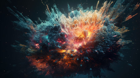 An AI generated illustration of huge vibrant explosion in space, explosion in outer space