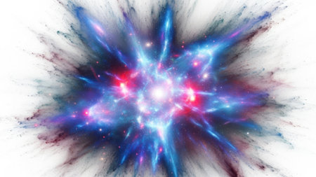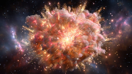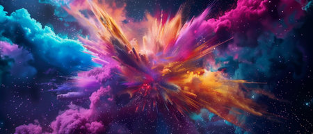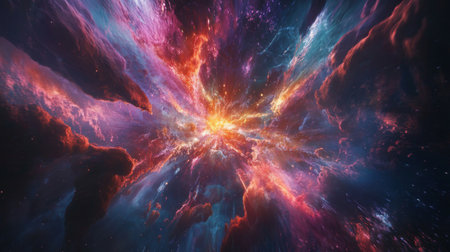 A stunning depiction of a cosmic explosion in deep space, featuring vibrant colors and dynamic patterns that illustrate the beauty of the universe.