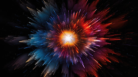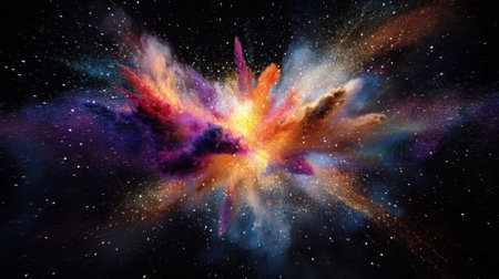 The explosion of the Big Bang universe, a supernova explosion made of colorful powder