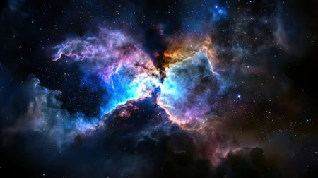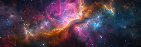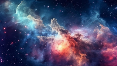 Vibrant nebula with shining stars and cosmic clouds