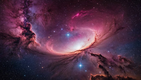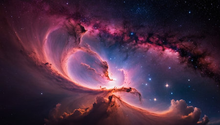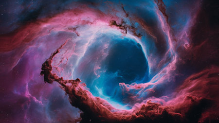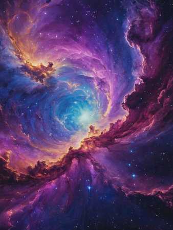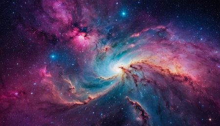Explore the beauty of a vibrant nebula in deep space, showcasing swirling colors and bright stars, perfect for creative projects and artistic inspirations.