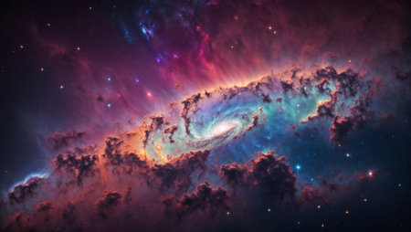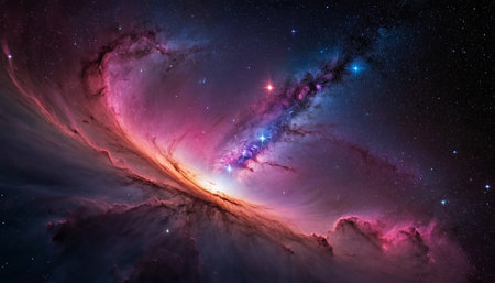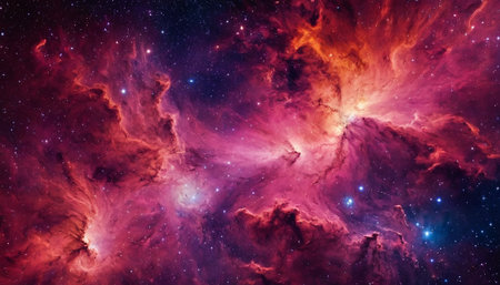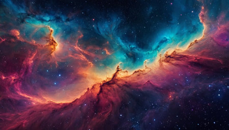 Vibrant cosmic clouds illuminated by stars in a stunning nebula revealing intricate details and colors in the vastness of space