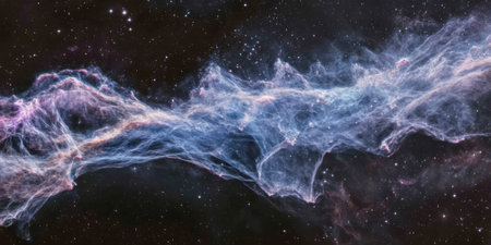 A crystalline nebula stretching across space, with delicate tendrils of sapphire and violet gas forming mesmerizing illustrations.