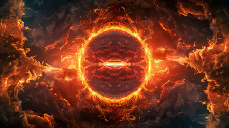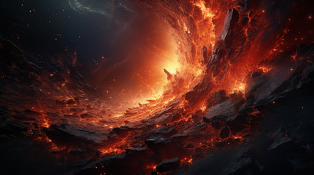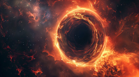 A striking cosmic vortex formed by swirling flames and deep space, creating a mesmerizing visual effect.