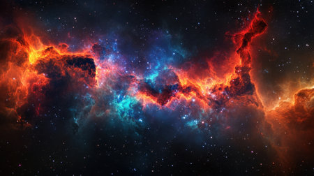 This breathtaking image showcases a colorful nebula, blending vibrant blue and fiery orange hues. It captures the essence of cosmic wonder and the vast mysteries of the universe.