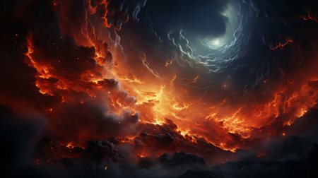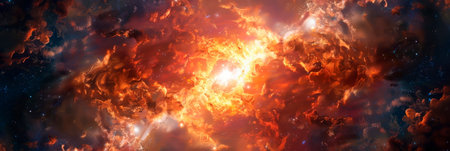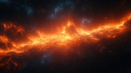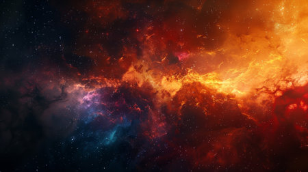 Celestial Firestorm Fiery Nebula in Deep Space, Vibrant Cosmic Clouds and Shimmering Stars