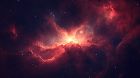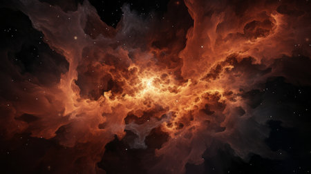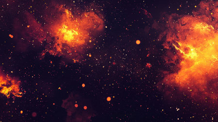 Vibrant Space Scene with a Fiery Nebula, Shimmering Stars, and Warm Shades. Exploring.