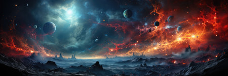 Panoramic view of deep space. Colorful nebula and stars.